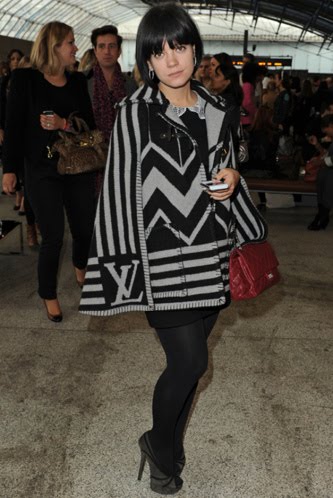 Lilly Allen disimula su tripa de embarazada bajo una preciosa capa de Louis Vuitton.