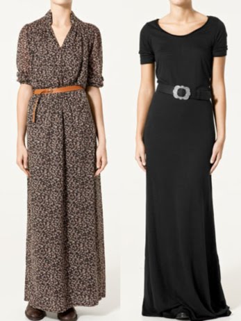 Este invierno he visto que se siguen llevando los vestidos hippies, aunque en tonos más otoñales, estos son de Zara y Mango.