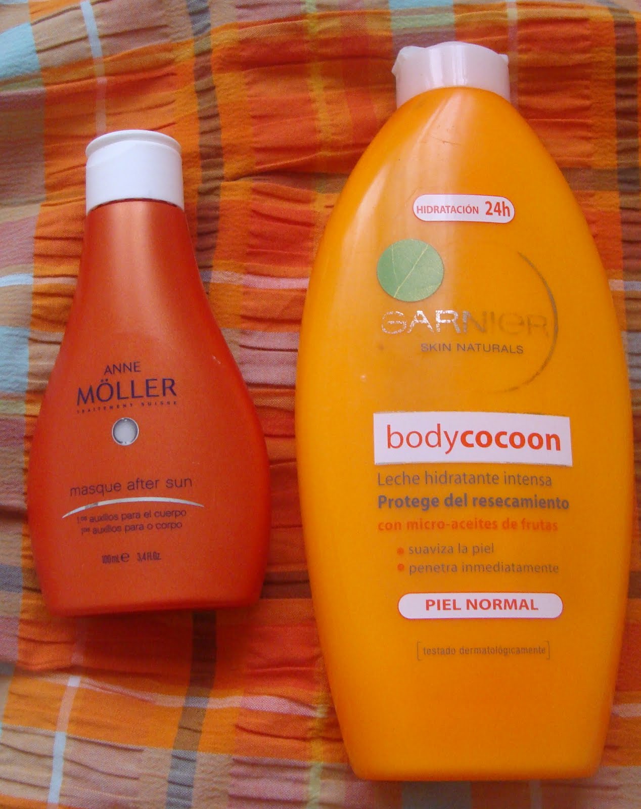 O dos productos que estoy utilizando este verano: hidratante corporal de Garnier y mascarilla para después del sol de Anne Moller.