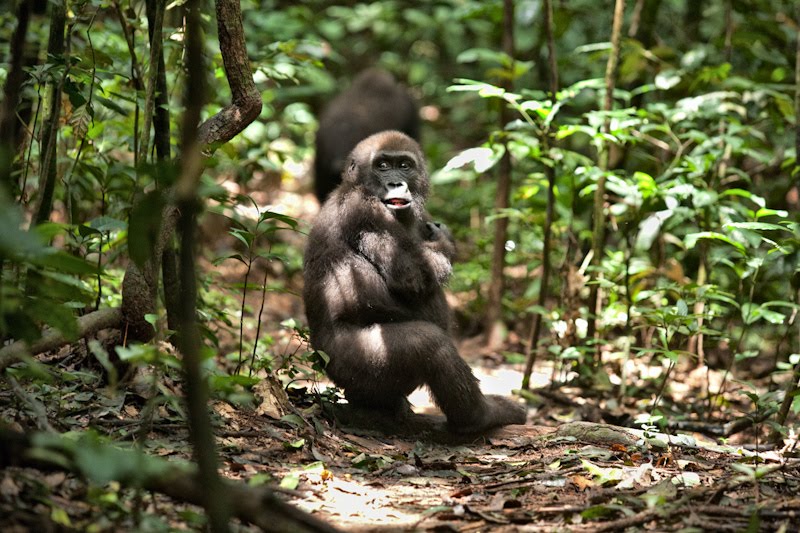 La charca también es lugar de reunión del búfalo de bosque o búfalo enano de unos 300 kg de peso así como de los bongos, un tipo de antílope que sólo se encuentra en determinadas áreas de África que incluyen el sur de Camerún, el suroeste y el este de la República Centroafricana y algunas zonas de Kenia y Sudán. Muy presentes en la reserva natural de Dzangha-Sangha están los gorilas occidentales de tierras bajas. Su alimentación a base de grandes cantidades de fruta, con la consiguiente expulsión de semillas, convierte a este animal en uno de los principales guardianes del ecosistema forestal.
