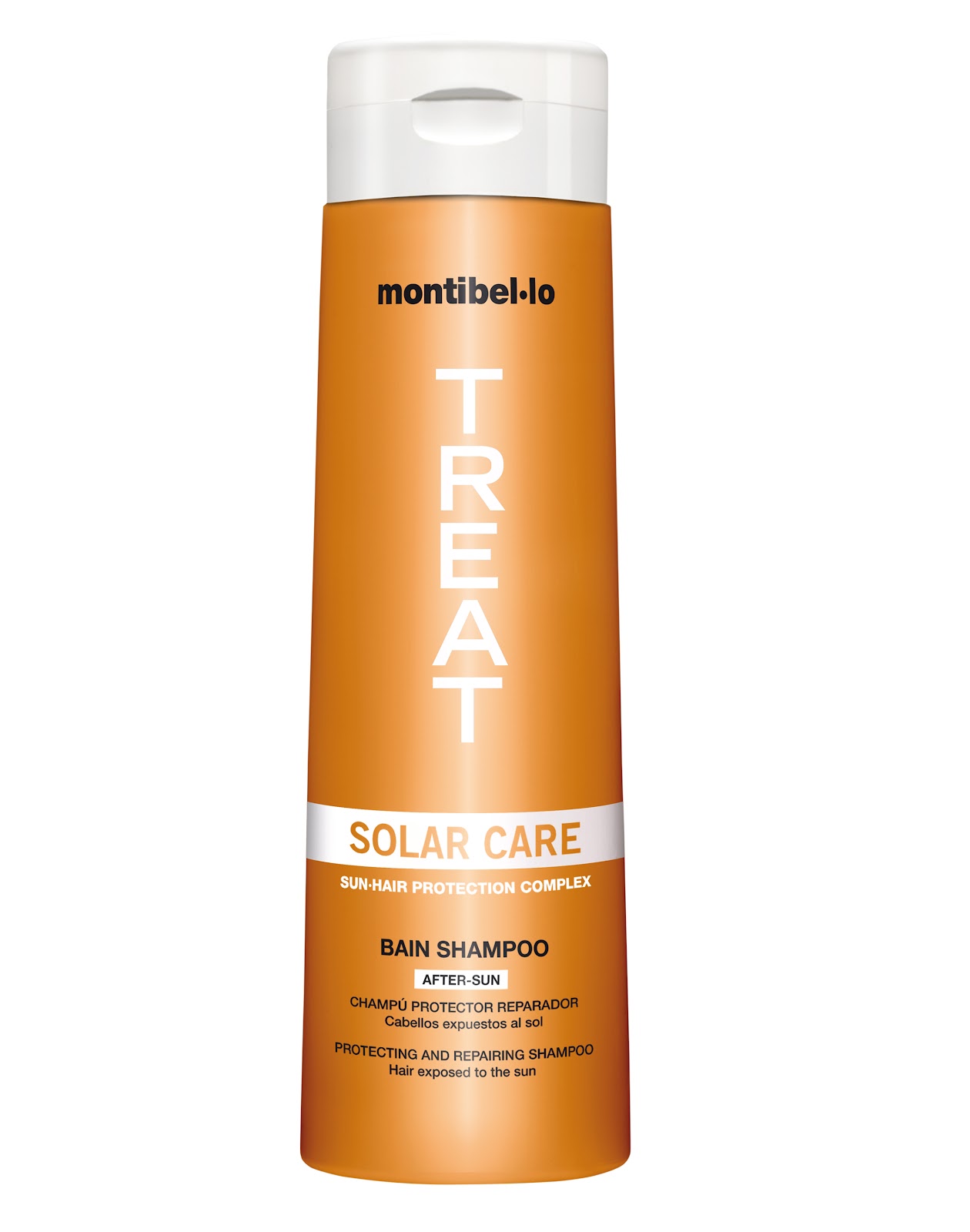 * Treat Solar Care Shampoo de Montibelo: este producto forma parte de una línea solar care que protege no sólo el pelo sino también el cuero cabelludo y puede aplicarse tras la exposición solar. Contiene aloe para calmar y aplicándolo con su suave masaje ayuda a eliminar los restos de sal y cloro.
