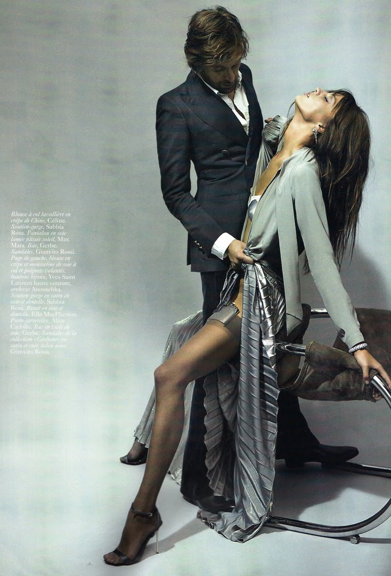 En Vogue Paris con Daria hablan de sexo impetuoso, repentino, en ropa de gala, salvaje y sorprendente. Con lencería de satén gris perla con brodeire angleise y copas de champagne entremezcladas con medias de carnadura negra y ligueros.