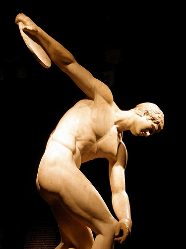 El cuerpo de Andrés Velencoso es como un estudio de anatomía por Mirón, cincelando en vez de mármol, carne. Me recuerda tanto a los atletas que adoraban con pasión laica los griegos que el parecido es casi evidente, salta a la vista que dicen.