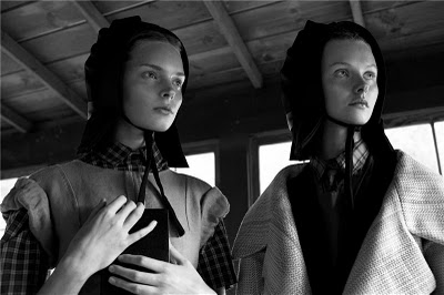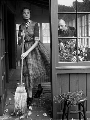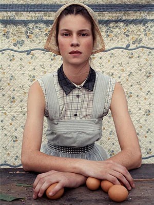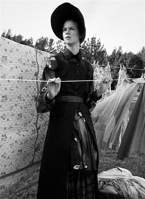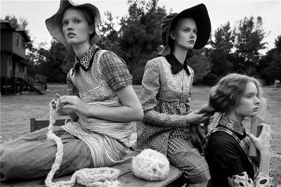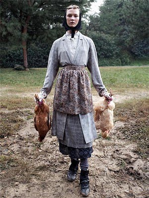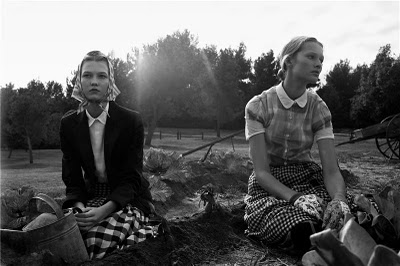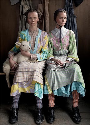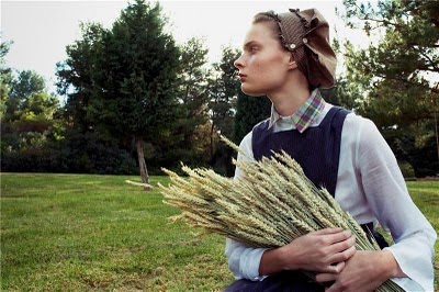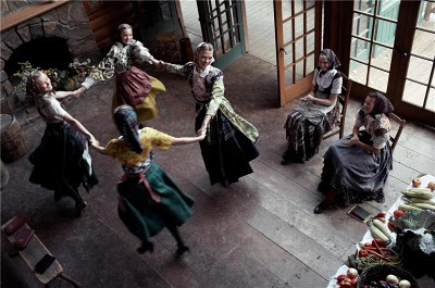 Steven Meisel piensa (para Vogue Italia) en “los prados del cielo” de verde y del color del trigo con unas muchachas algo alejadas de las huríes de los árabes y de las setenta vírgenes del “esfuerzo continuo” (que es lo que es, en realidad, la Yihad) y más cercanas al XIX largo de antes de la I Guerra Mundial cuando había Imperios en Europa y la nieve helaba Rusia sin sangre roja ni casacas comunistas.