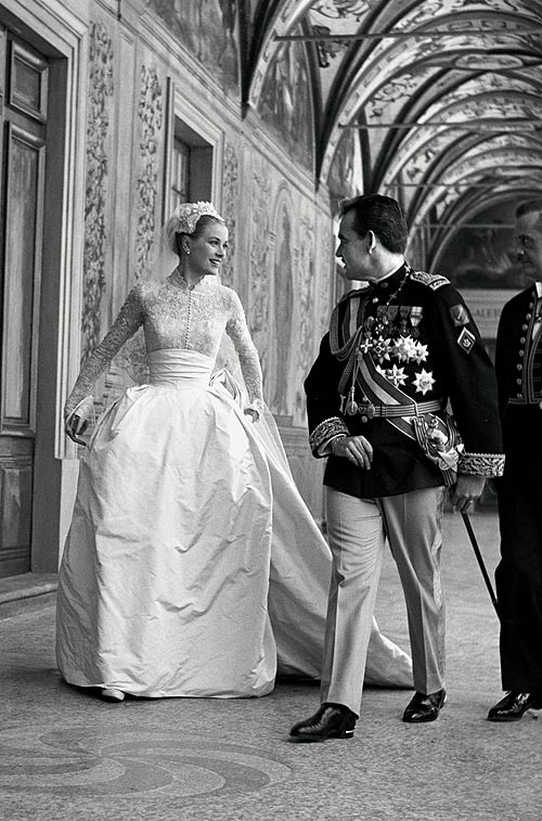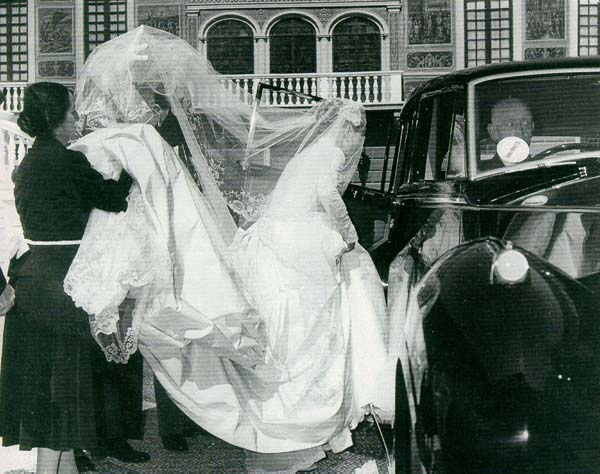 Pero, al margen de todo eso que son avatares de la vida, lo que importa es que Grace fue una de las novias más bellas vistas nunca. El traje, regalo de la Metro, diseñado por Helen Rose e inspirado en el XIX americano partiendo de una idea de la diseñadora para “Alta Sociedad”, en la que salía Grace. Grace Kelly se probó varias veces el vestido antes como si fuera un ensayo de vestuario. Hoy hace 55 años -19 de abril de 1956- de su boda y su vestido marcó un hito en el mundo de la moda nupcial: de hecho, Sarah Burton de McQueen ha creado este año para Kate Midlleton, señora esposa del hijo mayor de Diana de Gales, un diseño calcadito al de Grace. El trabajo de Burton, por cierto, se basa en ser más McQueen que McQueen y más Helen Rose que Helen Rose pero del sello SB no hemos visto aún nada.