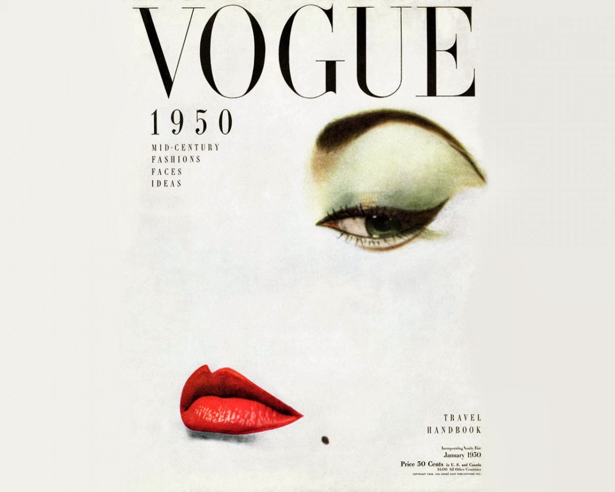 Irving Penn fue un genio: fotografiando tartas, fotografiando portadas. Las más famosas son las tres primeras, la de la mujer como gimnasta haciendo de letras de Vogue, la de la cara maquillada blanca y la de la mujer en traje de baño descansando que es una maravilla. Sin embargo, a mí me gusta la de Navidad de 1950 en la que sale Lisa Fonssagrives, ya su mujer, con un niño. También es bonita la de Nicole Kidman, mayo de 2004, de las pocas portadas o reportajes que hizo que no fueran bodegones para Vogue, y que demuestra que no sólo estaba perfectamente en sintonía con los tiempos modernos sino que su trabajo era mejor que el del 99% de fotógrafos actuales.
