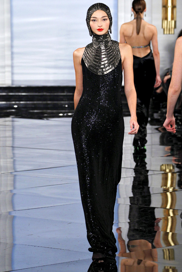 Ya no es aquella supermujer de Armani ni la Walkiria de Versace –sí, Claudia, tú-. Ahora el horizonte está puesto en China. En Oriente. Un futuro negro presagia Ralph Lauren, a primera vista, pero en realidad es un nuevo concepto del lujo. El muy alejado de nuestro gusto occidental, gusto oriental.