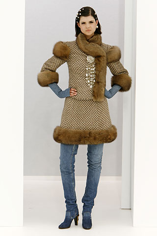 Para mí la mejor de estos tiempos en Chanel. Siempre que la veo pienso aquello de Yves, “lamento no haber inventado el vaquero” y me acuerdo de Lagerfeld. Lagerfeld-Yves vidas paralelas. En esta colección Lagerfeld no hizo nada que no supiera hacer de antemano, rejuveneció un Chanel metido en la mrotaja, encumbró a la Schiffer y empezó a fotografiarlo todo, remobió plumas, sombreros, cadenas, perlas y 2.55 como un combinado y se sacó una casa exitosa de la manga, de la más alta calidad e insiginia de Francia.