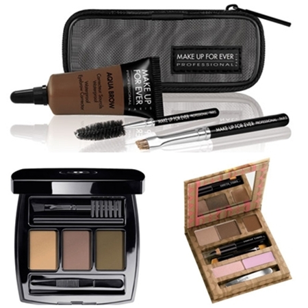 Abajo kit de cejas de Tweezerman y de Bobbi Brown