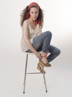 En los pies cómodas y estilosas cuñas de esparto, las de día de estilo oxford peep-toe y las de noche en suave ante azul.
