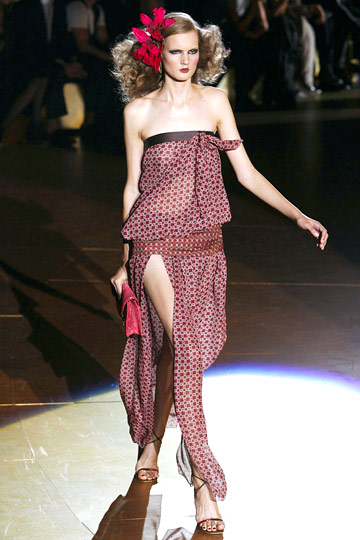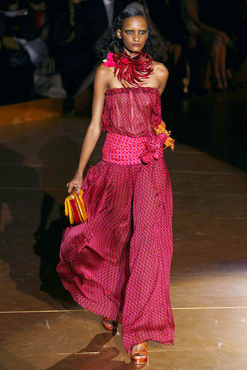 Se acuerda de Ossie Clark, de la música suave, de Saint Laurent con sus mujeres de verdad envueltas en un chal, con un gran pamelón, soñando con ser Verushka en aquel bonito desierto, con su sahariana y sus maneras de estrella sin duda. Y de aquella boda con Mick Jagger y la pamela, y la falda tikki o lo que fuera eso.