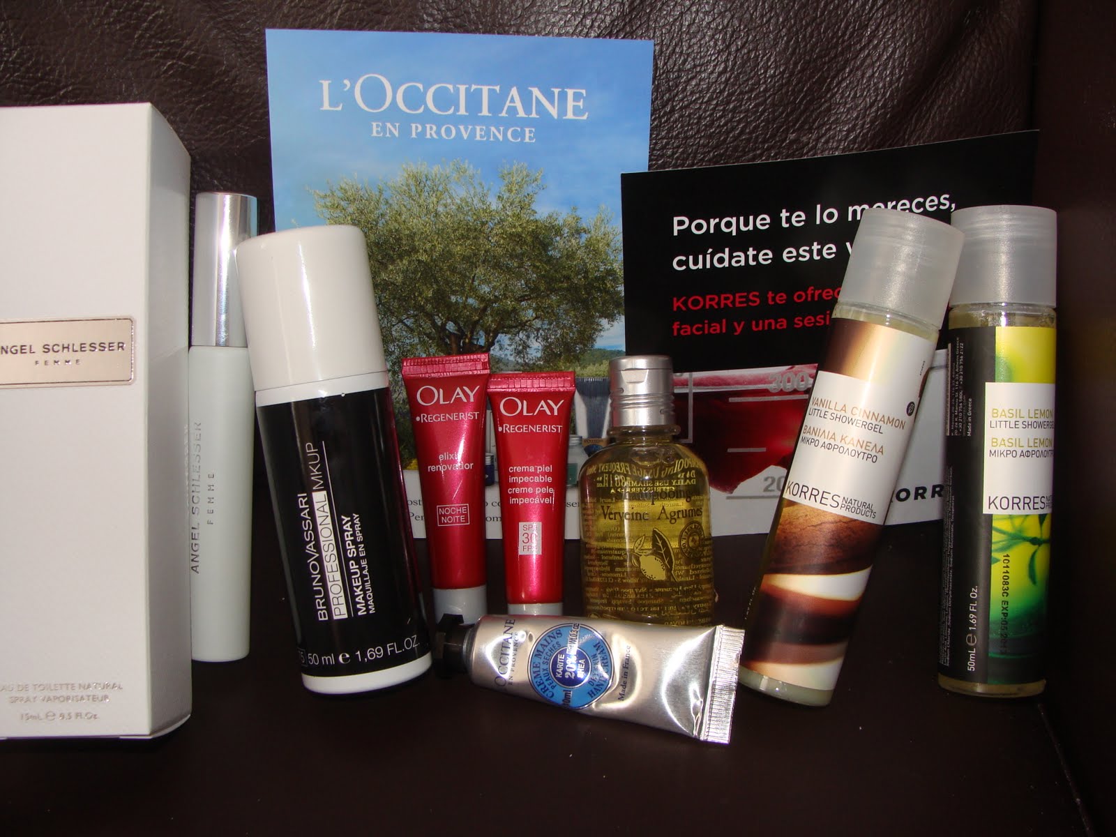 La segunda caja conteía 5 productos pero 3 de ellos eran dobles y algunas marcas habían cambiado: Angel Schlesser, Korres, L´Occitane y Olay (además de Bruno Vassari).