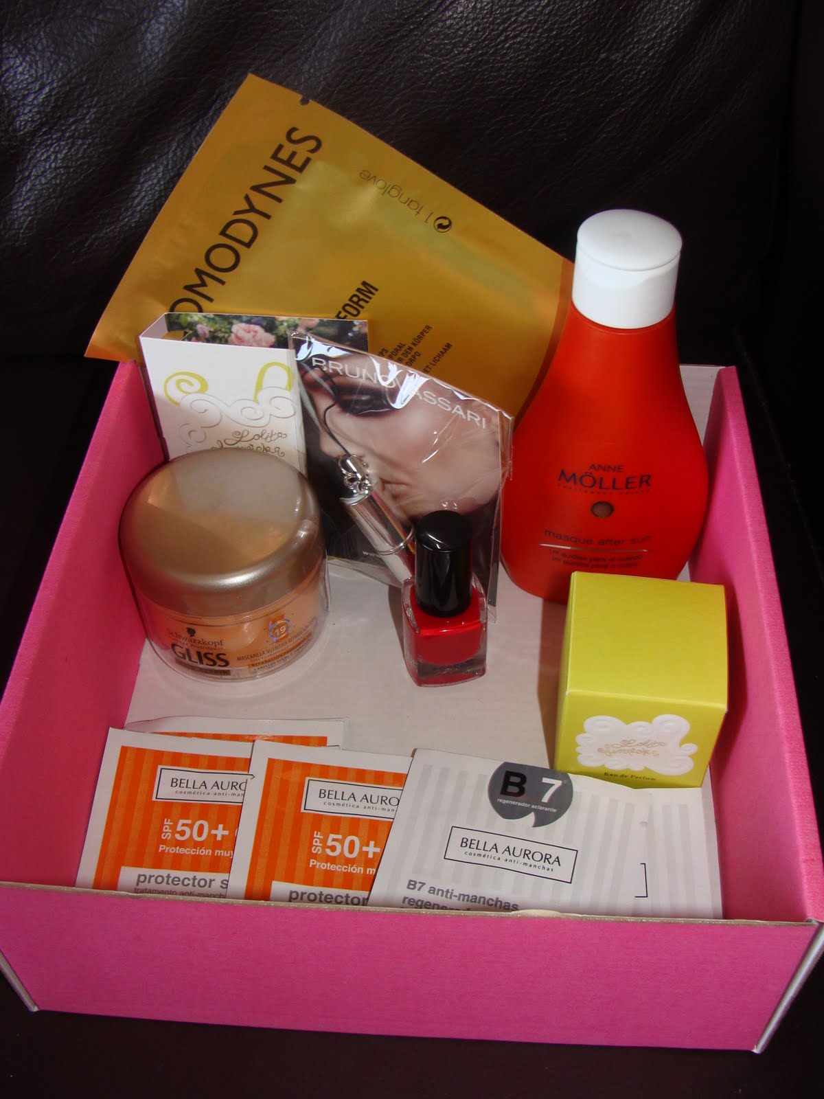 Respecto a las marcas, que al final es lo que interesa: en la primera caja venían 7 productos de Bella Aurora, Anne Möller, Bruno Vassari, Comodynes, Lolita Lempicka, Max Factor, Schwarzkopf.