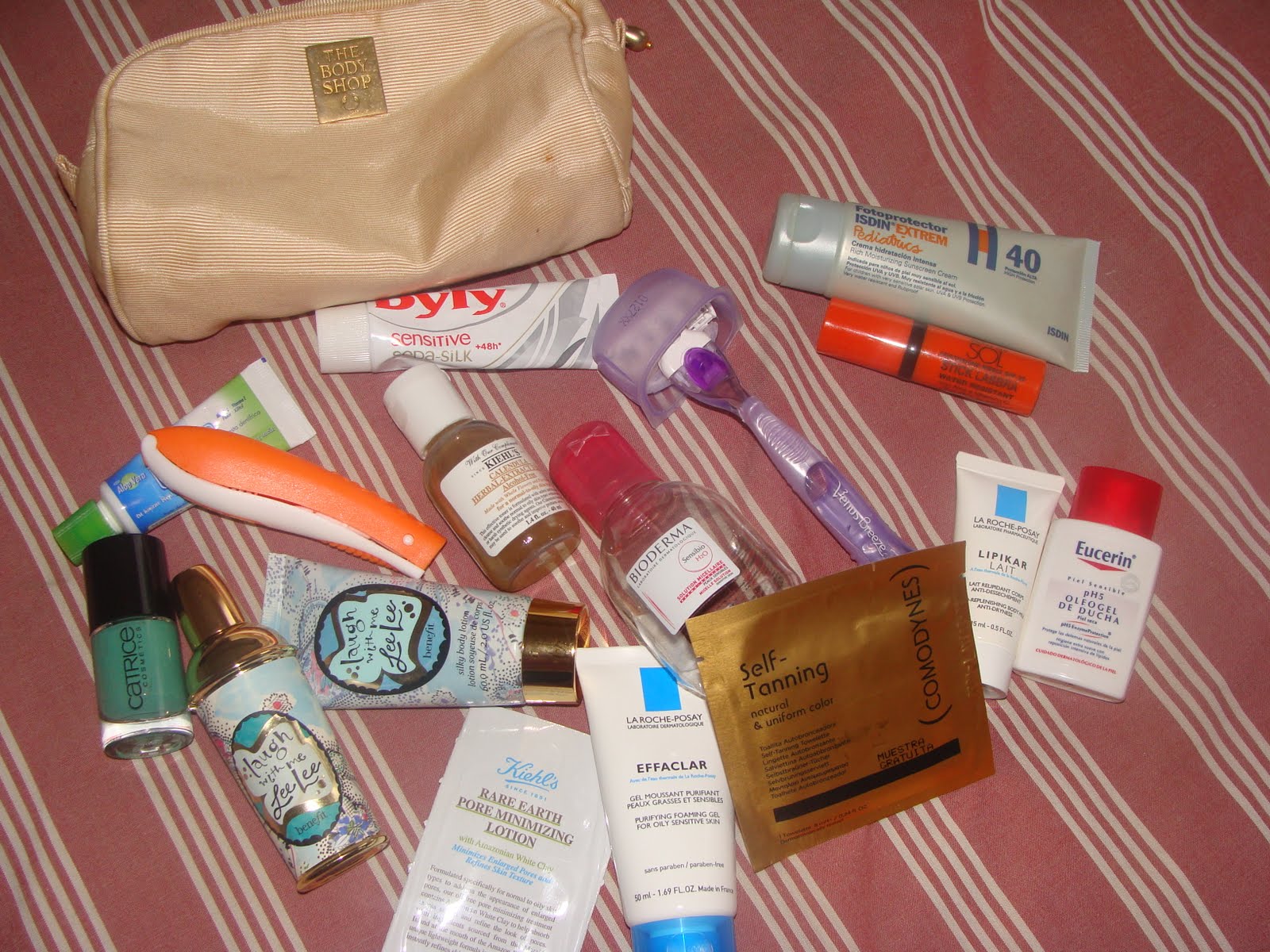Para una buena jornada playera, no me he olvidado ni de la protección solar Isdin FPS40 ni de mi labial FPS20 de Bottega Verde con aloe y vitamina C. Después de la ducha con el Oleogel de Eucerin me hidrataré con Lee Lee de Benefit y me perfumaré con su colonia (la compré para navidades en una cajita monísima y sólo la utilizo en ocasiones especiales), sin olvidar el desodorante en crema Byly (no me acaba de gustar su formato en crema, creo que se suda incluso más pero no encuentro ninguno para llevar en el neceser que me convenza, salvo las toallitas desodorantes de Sephora).