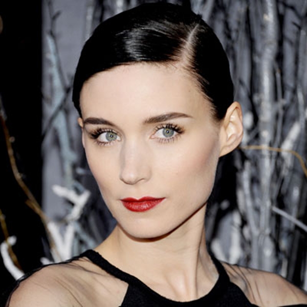 | Para pelos cortos como el de Rooney Mara es muy cómodo. También se apunta al look con los labios rojos |