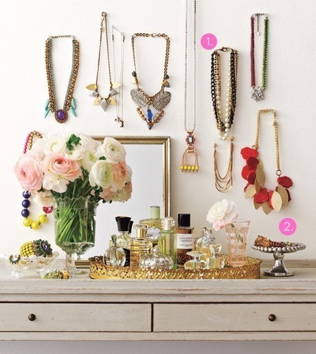 *Hazte con ganchos para organizar los accesorios. Hay tres cosas que son lo que peor organizado tengo, porque me resultan difíciles de ordenar y colocar bien: los bolsos, la joyería, y los zapatos. Se acumulan amontonados y, por ejemplo, con las joyas, hace que ni me acuerde de lo que tengo, aunque la cosa mejoró desde que me compré un joyero.