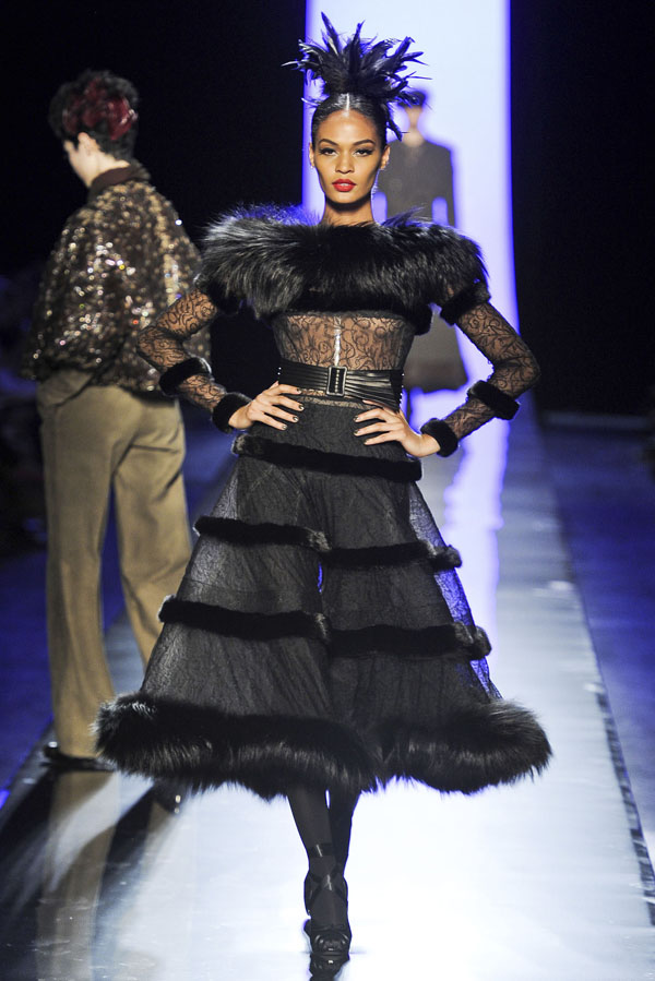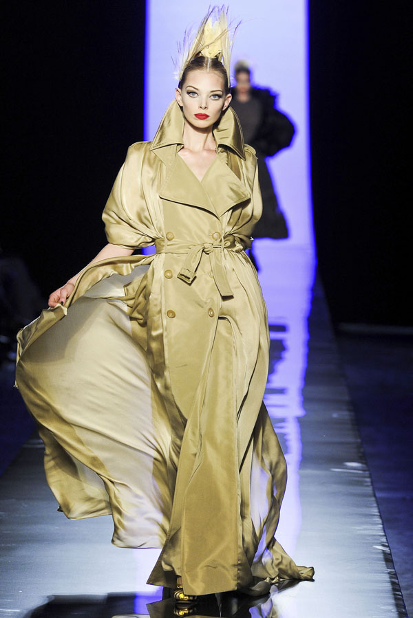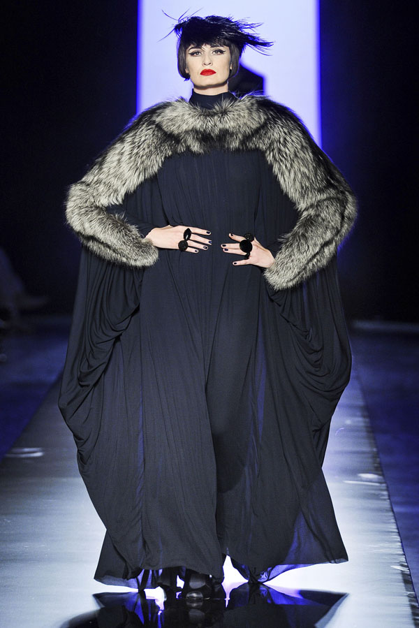Para mí es el mejor cumplido que se puede hacer a su colección de HC de otoño invierno 2011 2012. La elegancia, tiene, como todo, un rastro de esnobismo, de exageración, de ampulosidad. Y no hay duda de que Gaultier sabe ser chic. Es demasiado exceso para ser elegante y precisamente por ello es, precisamente, el culmen de la elegancia. Berlín años 20, años 40 una vampiresa del cine negro, una princesa del cine mudo, de las estepas mongolas, una reina del hielo lapona, una condesa del medievo o una monja de clausura que escapa de las llamas envuelta en zorros para dirigirse adonde todos los milagros son posibles, a Rusia, a Roma, a Jerusalén o a Santiago.