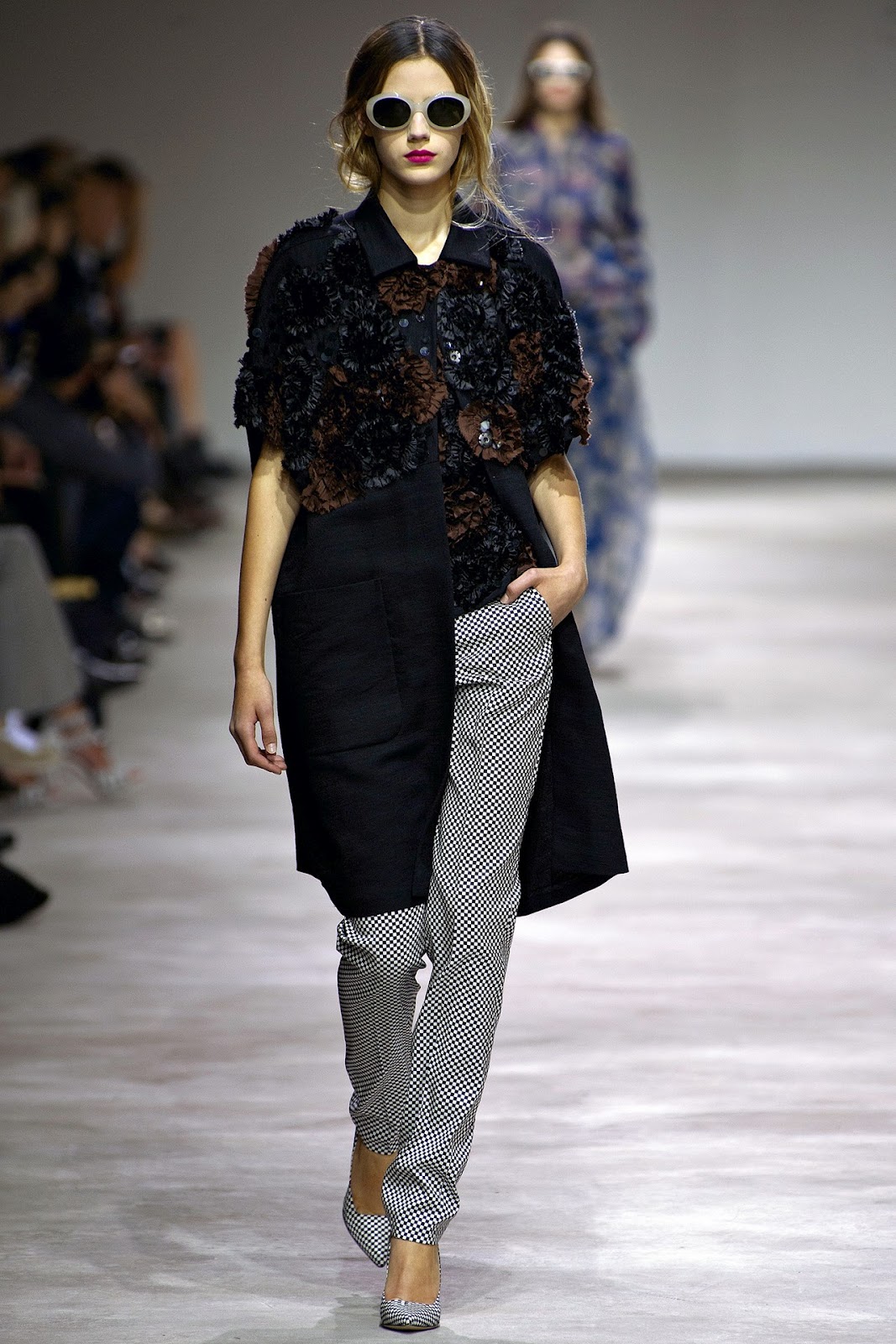 Eso de que “el diablo está en los detalles” no puede ser más cierto. Siempre que Van Noten pisa la pasarela pienso que sus colecciones son más de entretiempo que de verano o de invierno propiamente dicho. Y, en ésta ocasión, no es una excepción. Flores de gasa que adquieren volumen pero que no dan la sensación de falso, pantalones que bailan sobre las caderas pero que son breves, frescos y cómodos. Faldas que parecen no tener sentido pero que están hechas con hilo de plata que las recorre en brocados. Zapatos y bolsos de cuadros que parecen ingleses y superposiciones naturales, hechas sin orden ni concierto, mezclando texturas y estampados que no pueden ser más increíbles e irrechazables juntos pero que resultan. Y no solo funcionan, no. Son deliciosos. Van Noten incluso se atreve con vestidos de gasa para cerrar su colección, largos, hasta los tobillos, que parecen citar a los 70s ingleses de Biba y el neoromanticismo que se prolongó hasta los 80s.