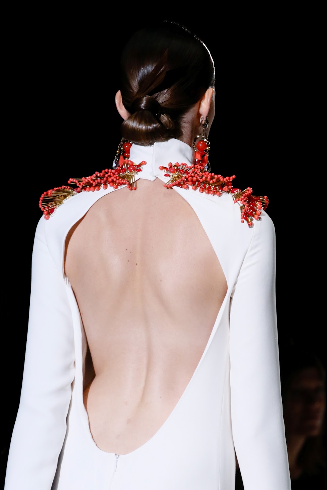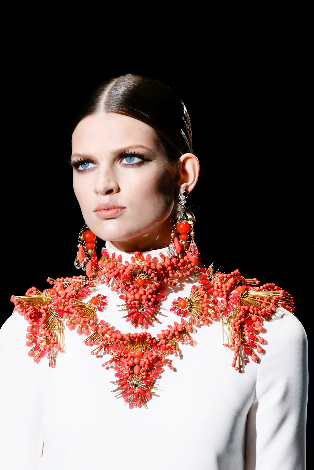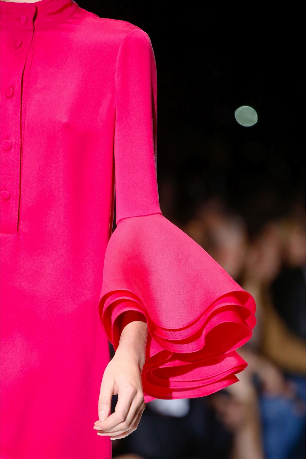 ¿Cómo? Paradójicamente con caftanes setenteros, colores bloque y ropa que podría tener Marisa Berenson colgada en su armario. Se ha aplaudido a Gianinni por ello. Lo mejor, con diferencia, son los detalles: volantes, colgantes inmensos, escotes en V para veladas con coca y bandoleras de colores intensos. Y luego dicen que no vuelven los sesenta –setenta-. Ja.