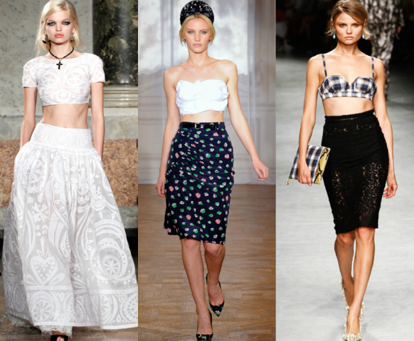 Los tops se encogen hasta mostrar el abdomen, como si hubieramos retrocedido a los años 80.