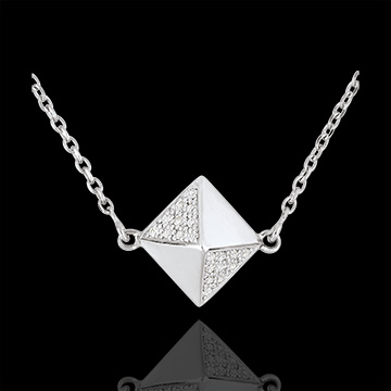 O este collar de oro blanco con diseño moderno.