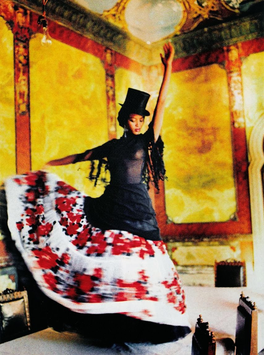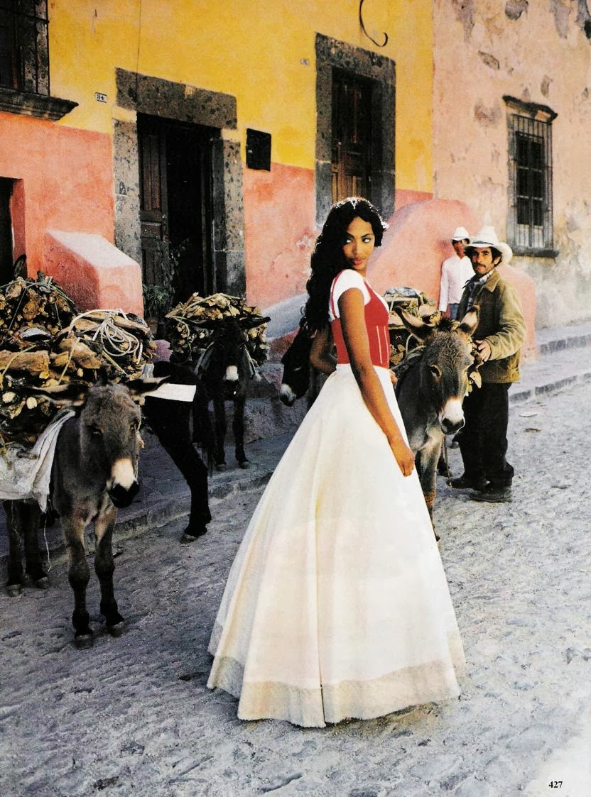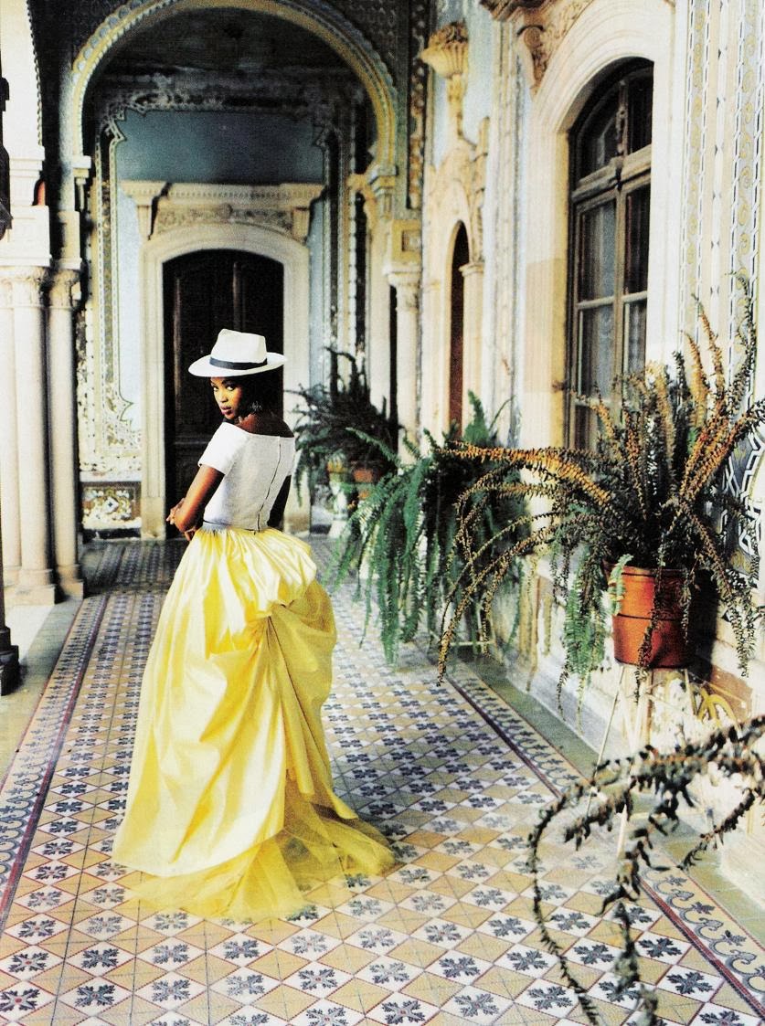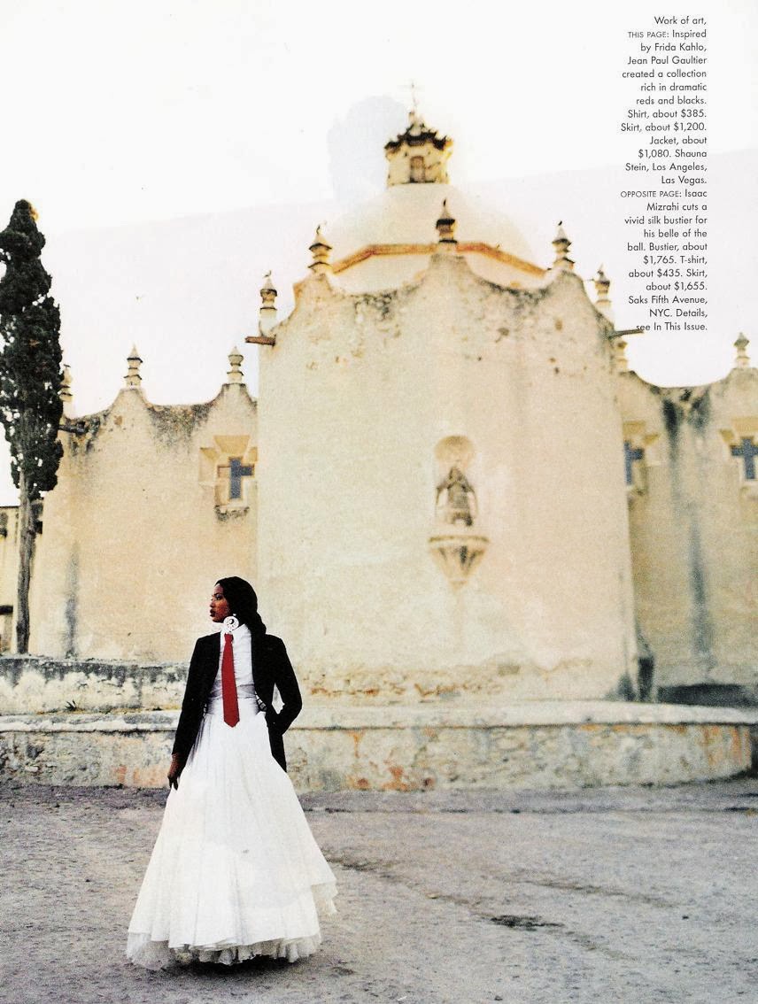 Naomi Campbell es una de las tops que menos tiempo ha ocupado mi pensamiento. Y eso que era negra, escultural y con un atractivo físico poderoso. Naomi tenía garra en la pasarela y en las fotos. Sin embargo, este editorial, fotografiado por Ellen von Umwerth, para Vogue USA en su edición de marzo de 1998, acompañada de Tony Ward y ubicado en México, me encanta y me parece un retrato perfecto de lo que siempre ha representado Vogue para mí, de lo que hecho de menos en Vogue y también de esos tiempos, de los que la propia Grace Coddington habla con nostalgia en sus memorias, en los que la moda era lo fundamental.