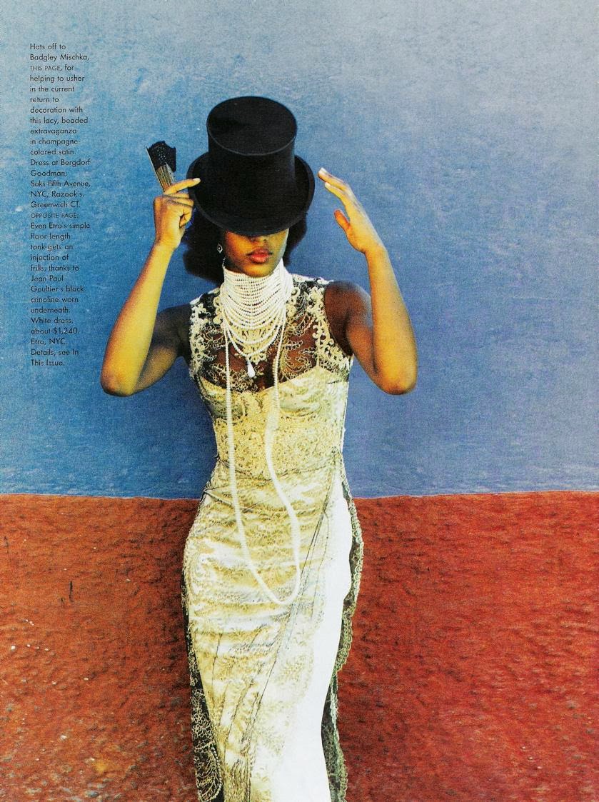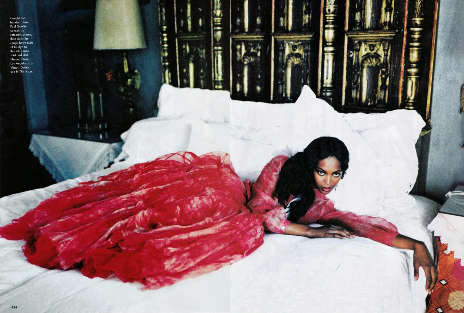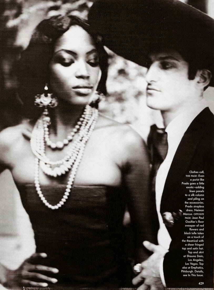 Naomi Campbell es una de las tops que menos tiempo ha ocupado mi pensamiento. Y eso que era negra, escultural y con un atractivo físico poderoso. Naomi tenía garra en la pasarela y en las fotos. Sin embargo, este editorial, fotografiado por Ellen von Umwerth, para Vogue USA en su edición de marzo de 1998, acompañada de Tony Ward y ubicado en México, me encanta y me parece un retrato perfecto de lo que siempre ha representado Vogue para mí, de lo que hecho de menos en Vogue y también de esos tiempos, de los que la propia Grace Coddington habla con nostalgia en sus memorias, en los que la moda era lo fundamental.